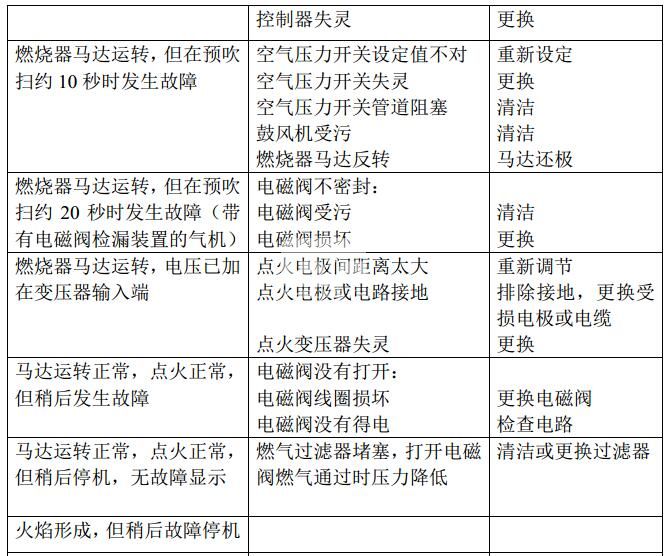 在發生故障時,必須高先檢查燃燒器正常運轉的條件是否滿足: